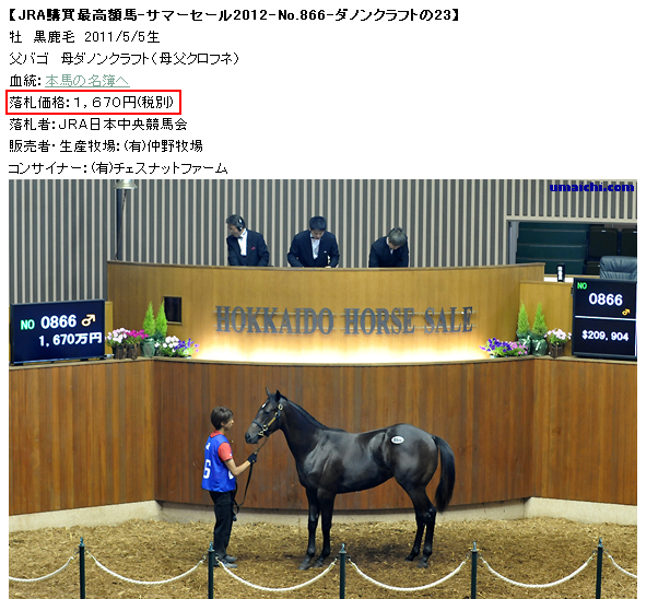 1 :名無しさん@実況で競馬板アウト:2012/09/01(土) 16:39:56.12 ID:Df/0kQN10JRA購買最高額馬-サマーセール2012-No.866-ダノンクラフトの23 牡 黒鹿毛 2011/5/5生 父バゴ 母ダノンクラフト(母父クロフネ) 血統:本馬の名簿へ 落札価格:1,670円(税別) 落札者:JRA日本中央競馬会 販売者・生産牧場:(有)仲野牧場 コンサイナー:(有)チェスナットファーム http://blog.goo.ne.jp/umaichi_news/e/ff35a6463ac27b5b952038f9c516cde7 続きを読む