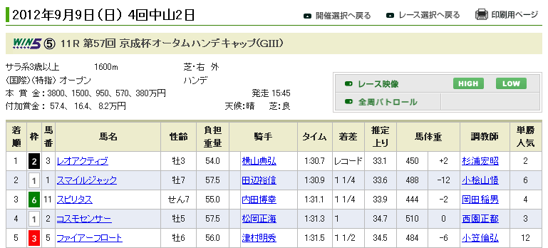 2012年 第57回 京成杯オータムハンデキャップ GⅢ レオアクティブ youtube
