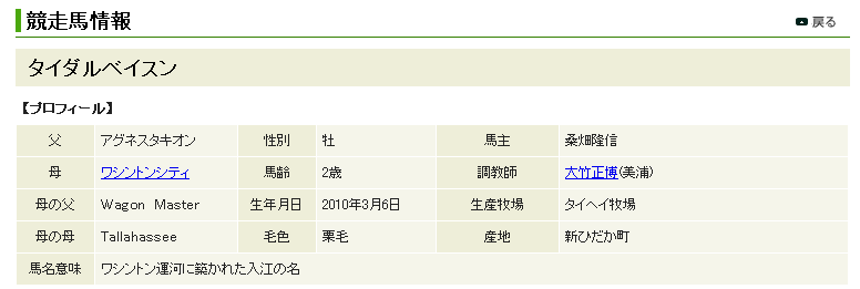 競馬ろまん亭 -競馬まとめ-: 【競馬】タイダルベイスンはアグネスタキオン最後の大物
