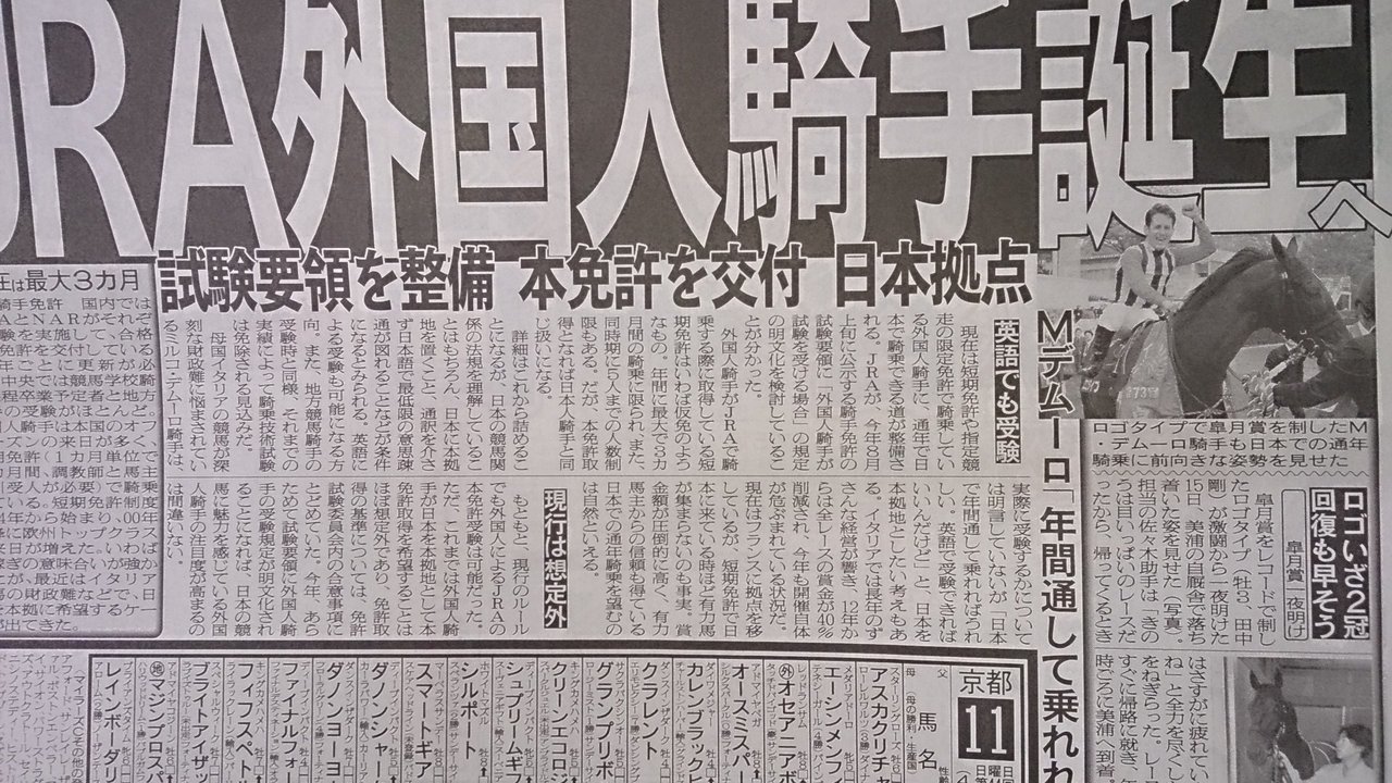-ホースニュース俺-: JRA外国人騎手誕生へ 日本拠点で通年免許