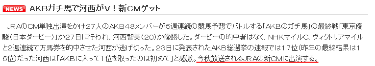 競馬ろまん亭 -競馬まとめ-: 【競馬】AKB河西のJRA秋競馬CMってどうなった?【ガチ馬】
